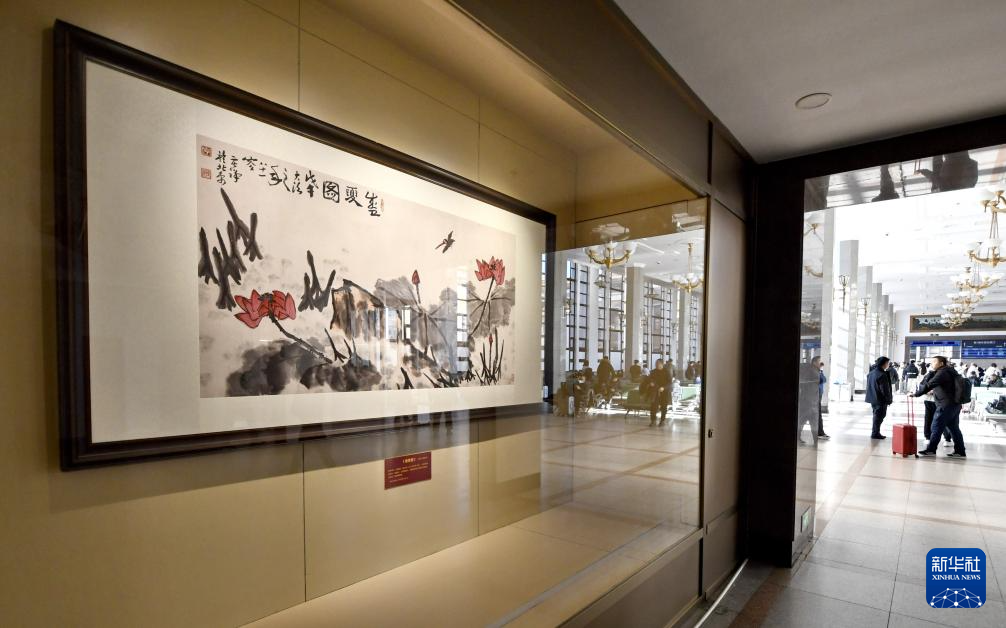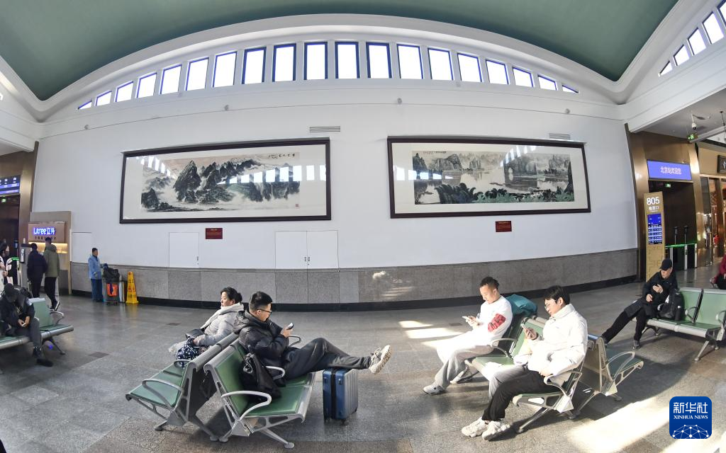北京火车站候车大厅由美术名家赠送的绘画作品(2024年12月18日摄)。
