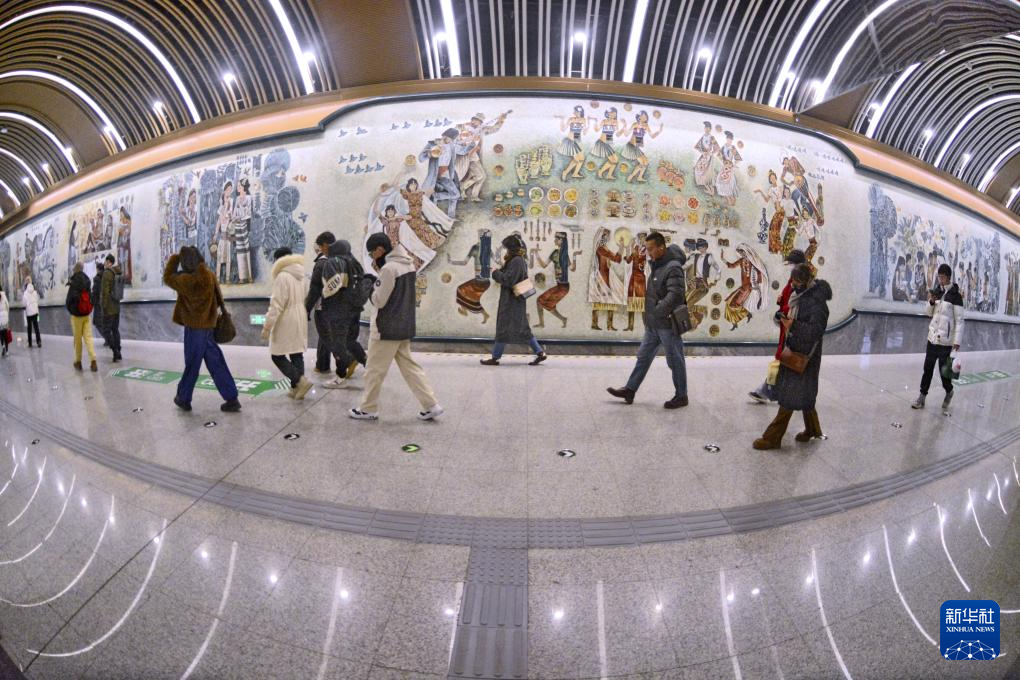 北京地铁19号线牛街站的壁画作品(1月4日摄)。