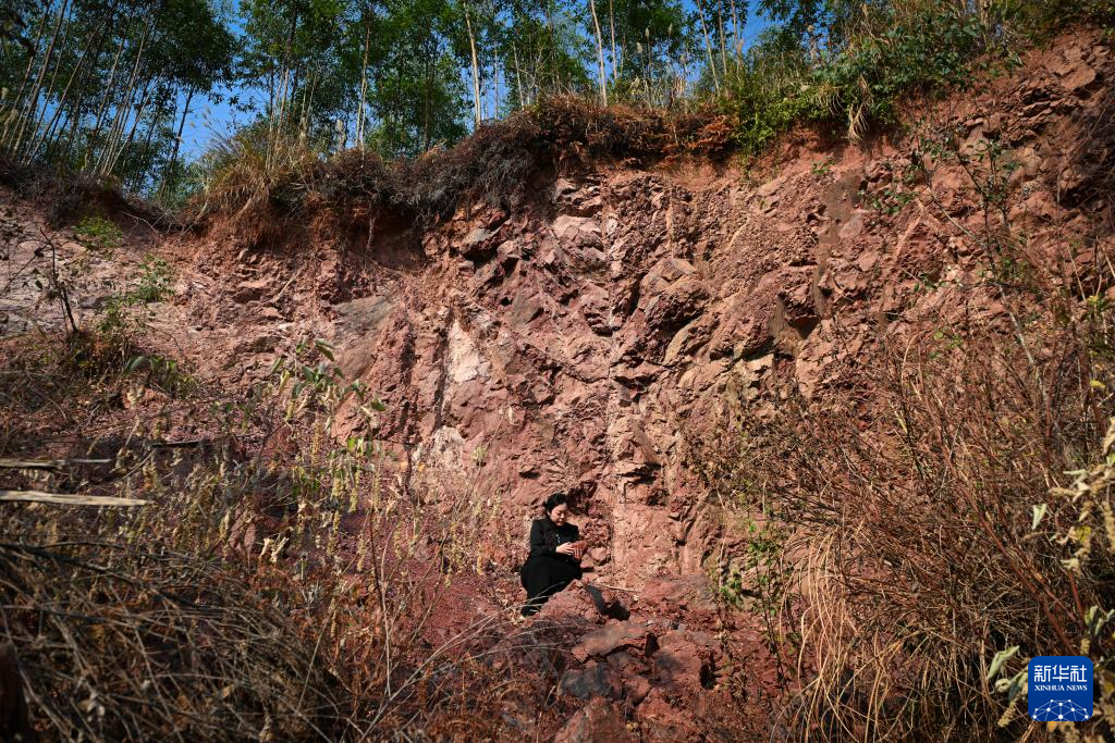 1月2日,郭卉在陶土原料地查看西泥。该原料地位于钦江西岸,所产陶土颜色紫红,质地细腻,被称为西泥。西泥与产自钦江东岸的东泥按一定比例混合,成为坭兴陶陶土最主要的原料。