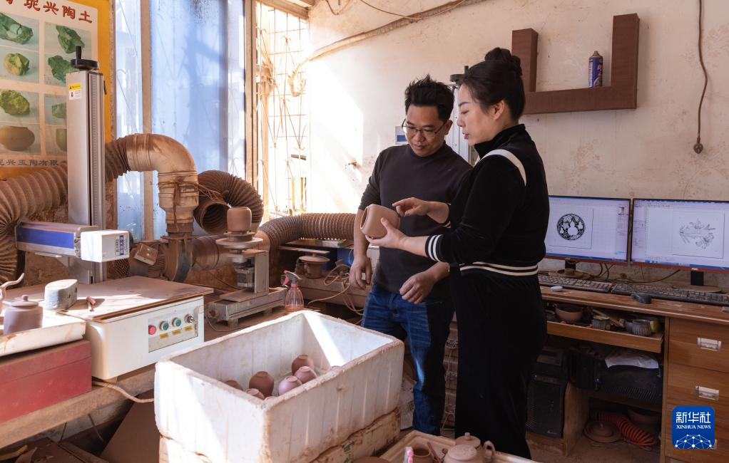 在郭卉看来,家乡坭兴陶产业的发展壮大离不开“守正创新”。如今,在郭卉位于钦州的工作室中,既能看到传统的手工制坯、手工制壶、模具制作,也有激光打印、雕刻等较新的技术应用。2020年,郭卉被评为全国劳动模范。下一步,郭卉计划在南宁开办坭兴陶展览馆,继续传播坭兴陶文化。