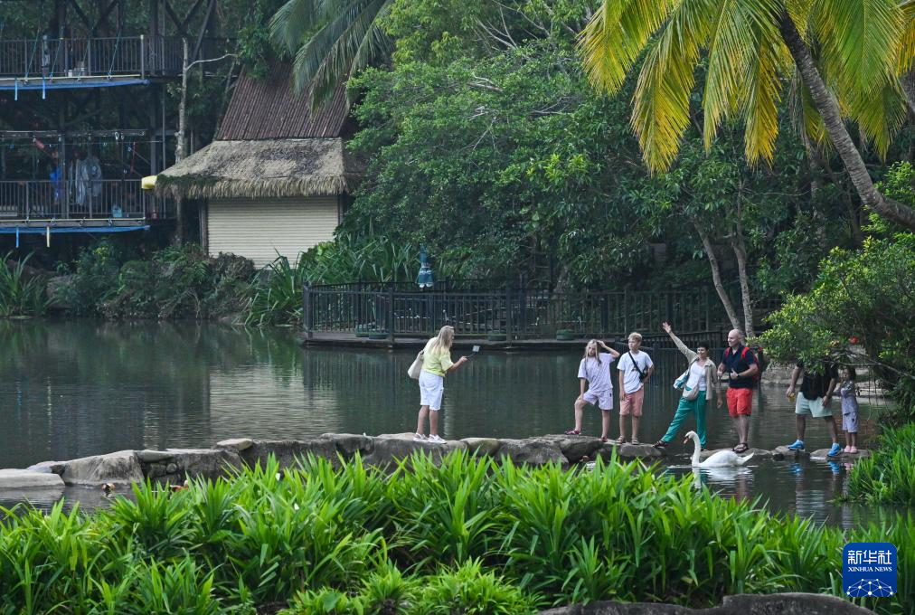 外国游客在位于海南保亭的呀诺达雨林文化旅游区游玩(2024年11月1日摄)。