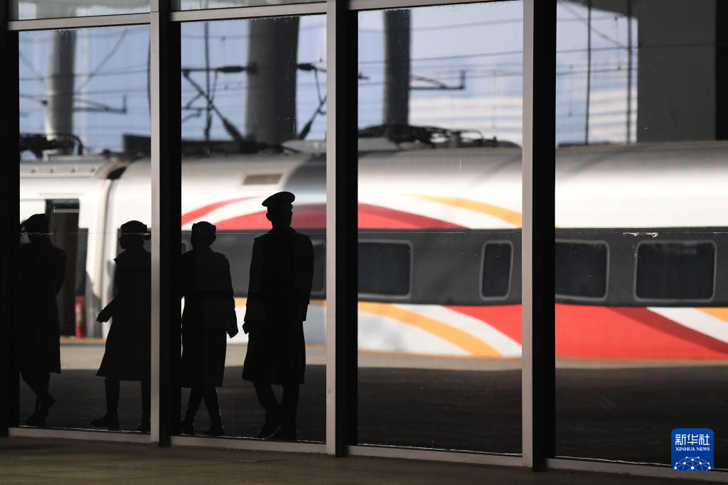 1月5日,旅客在西安北站乘坐G828次西安至香港直达高铁列车。