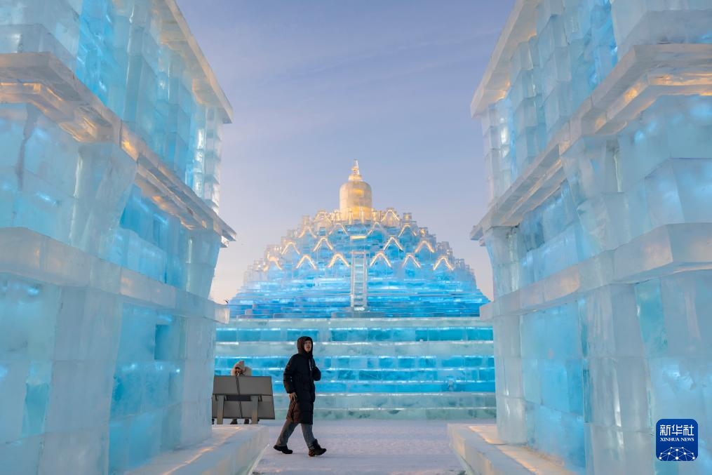 这是1月5日拍摄的哈尔滨冰雪大世界园区景观。