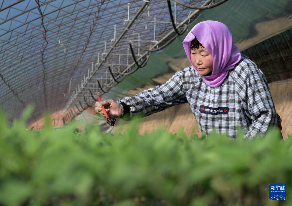 近日,河北省唐山市曹妃甸区的农民抢抓农时,开展蔬菜、瓜果幼苗培育工作,为农业生产和种苗市场提供保障。
