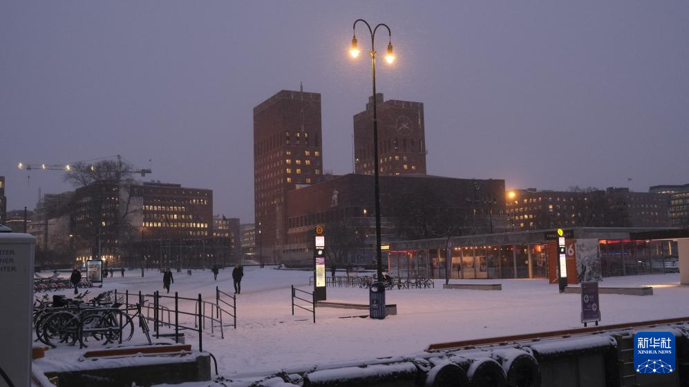 这是1月6日拍摄的雪中的挪威首都奥斯陆。