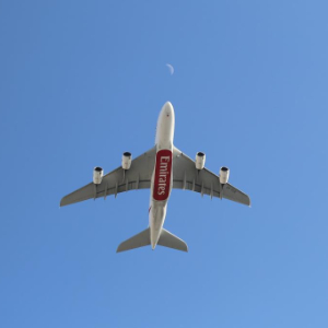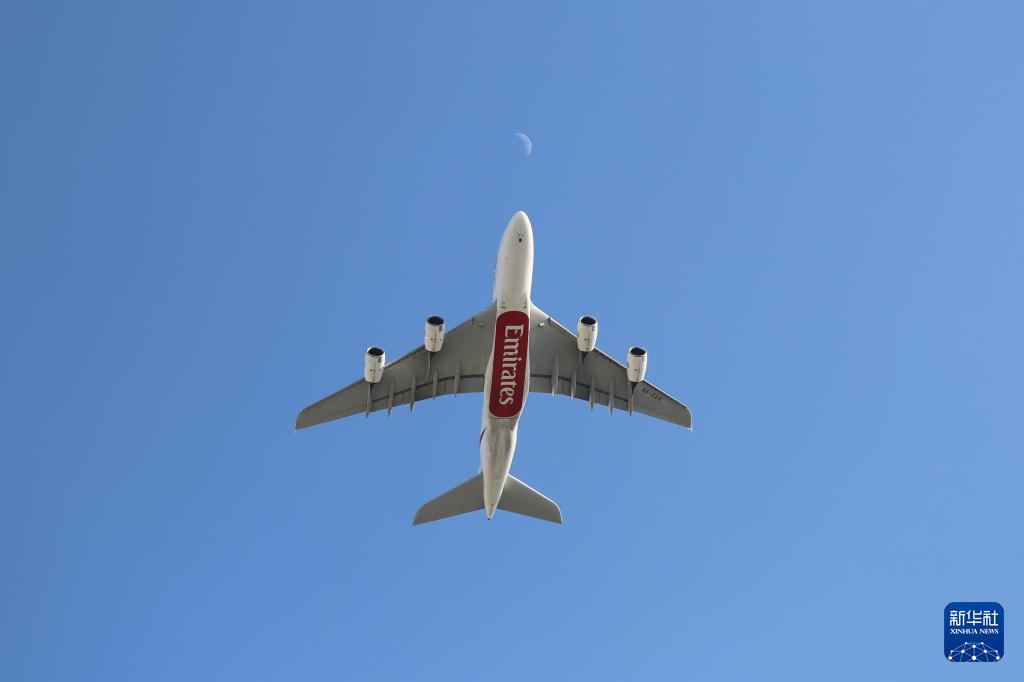 这是1月5日在阿联酋迪拜拍摄的一架阿联酋航空公司班机。