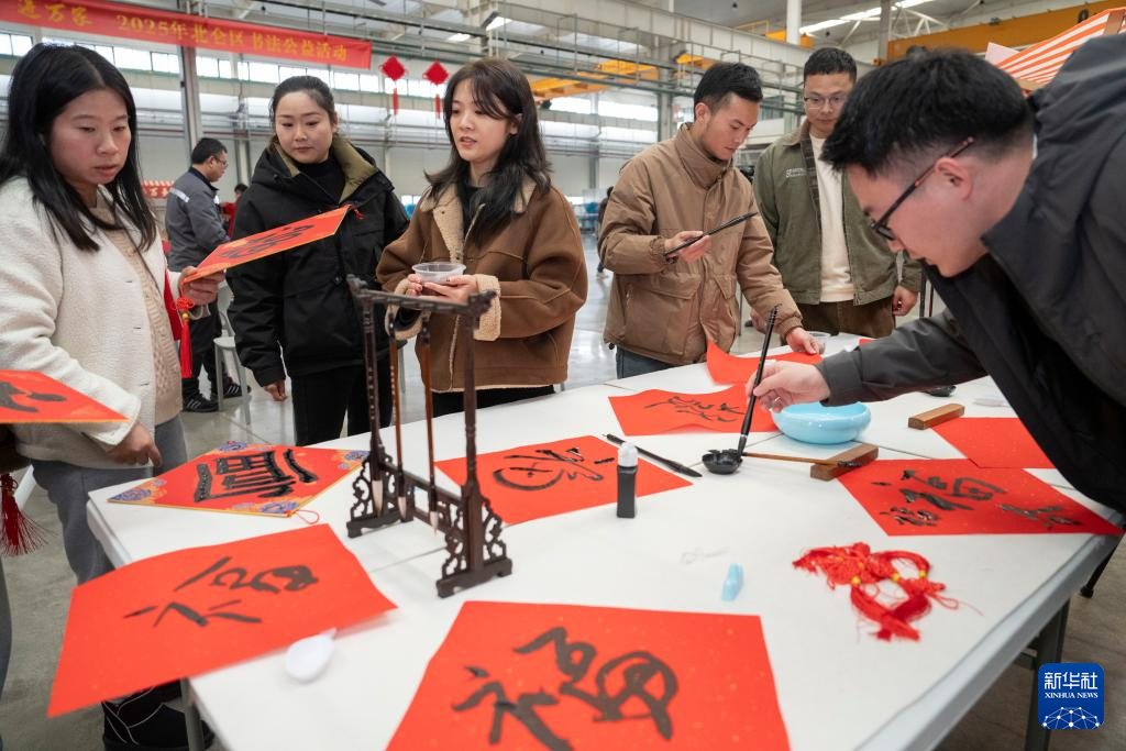 当日,由全国总工会宁波蹲点组主办,北仑区总工会等单位承办的“送万福 进万家”书法公益活动在宁波市敏实汽车技术研发有限公司的车间内举行,为广大职工送上新春祝福。