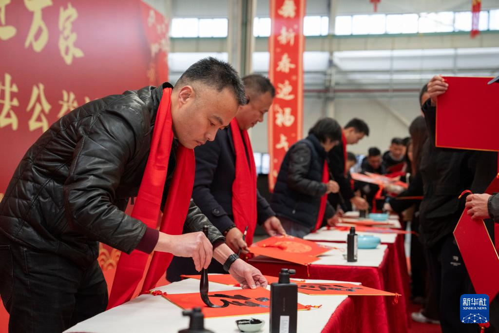 1月7日,书法家在“送万福 进万家”书法公益活动上写福字。