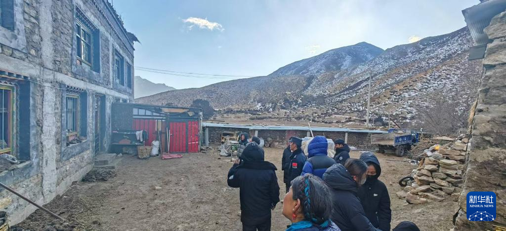 1月7日,日喀则市定日边境管理大队曲当边境派出所工作人员在曲当村排查受灾情况。