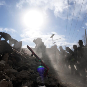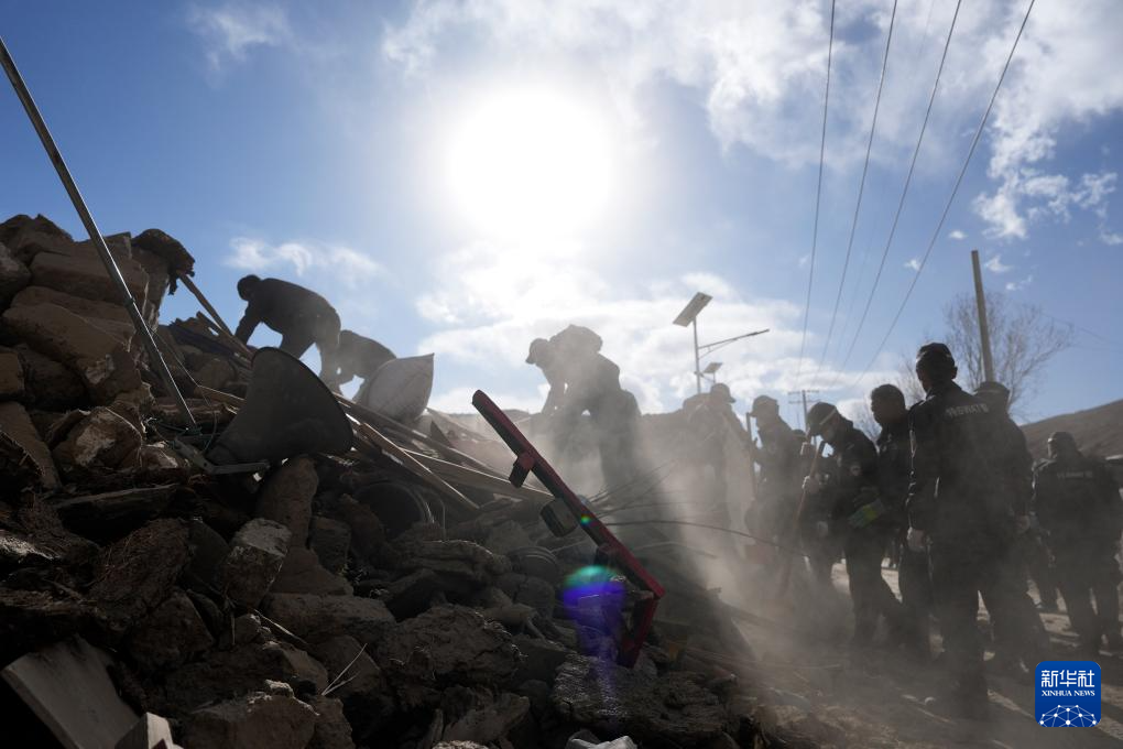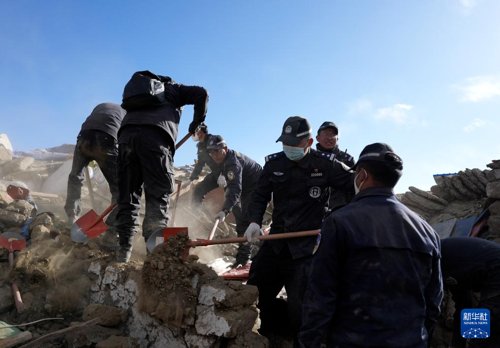 1月7日,救援人员在定日县长所乡古荣村进行搜救。