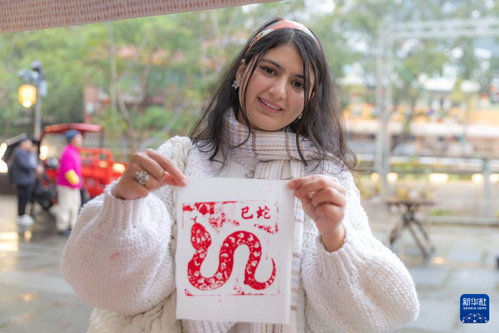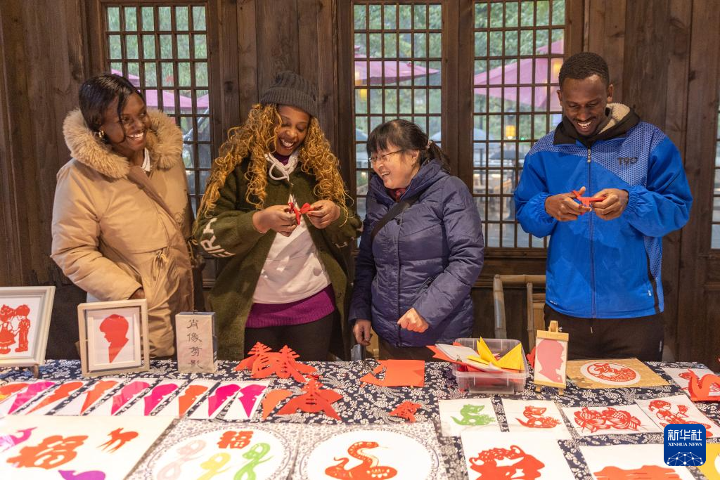 当日是腊八节,外国留学生们来到重庆市北碚区金刀峡镇偏岩古镇,体验剪窗花、糖画、葫芦雕刻等传统民俗文化活动,品味“中国年”。