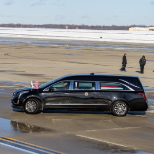 1月7日,装载美国前总统吉米·卡特灵柩的灵车准备驶离马里兰州的安德鲁斯空军基地。
