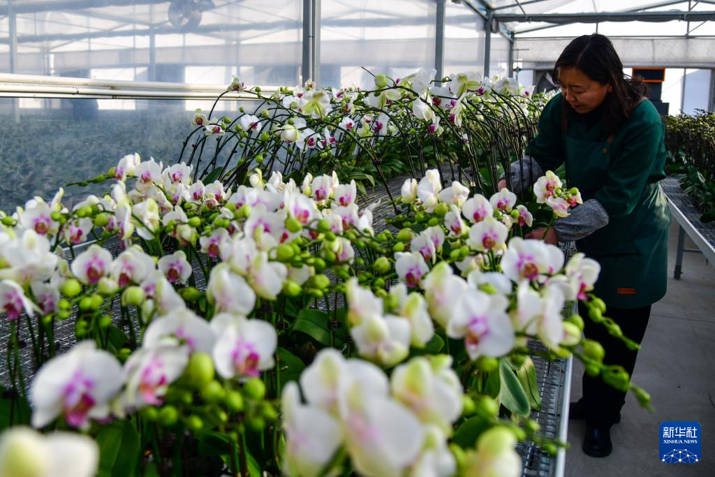 新年伊始,山东省淄博市博山区山头街道花卉大棚内的蝴蝶兰盛开,花农加强管护,抢抓节日销售旺季。近年来,山头街道引入花卉生产龙头企业,大力发展蝴蝶兰等花卉种植和水草杯生产加工,产品远销欧美及东南亚地区。