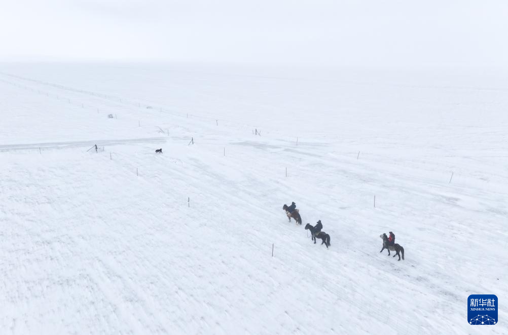 2024年12月27日,马背警队的民警在巡边踏查途中(无人机照片)。
