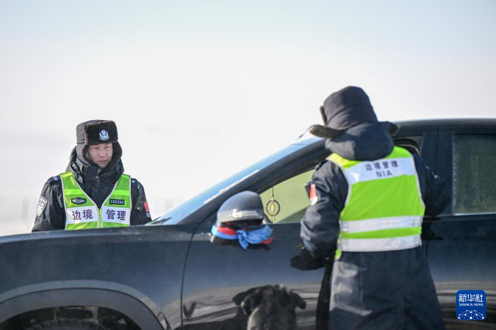 2025年1月8日,马背警队的民警张柏何(左)和陈子渊在检查站执勤。