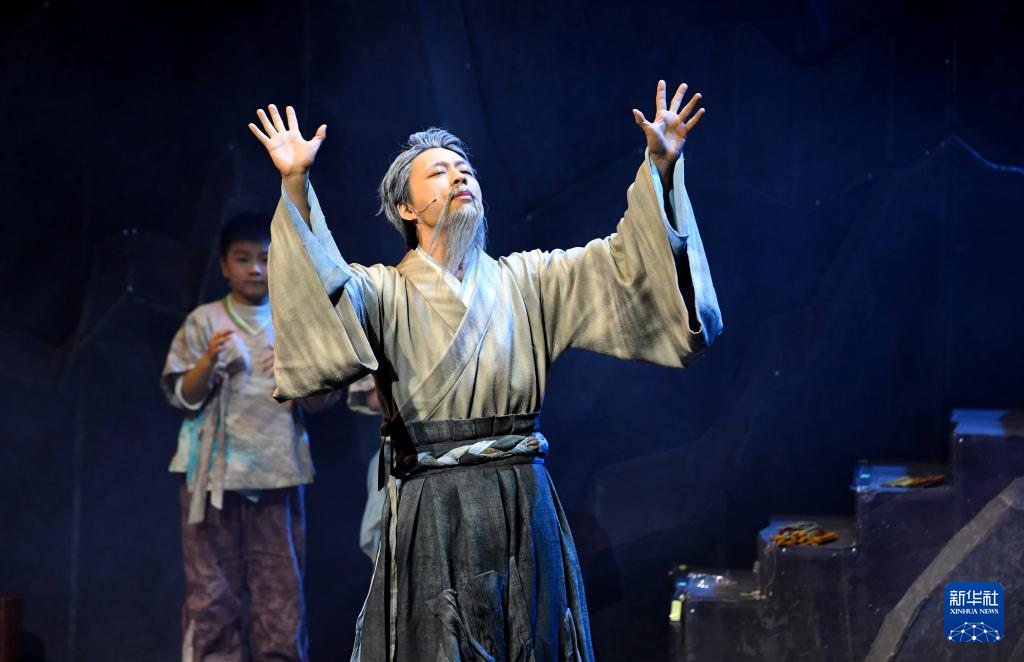 音乐剧《愚公移山》采用说唱表演的舞台艺术形式,让寓言故事人物与现代人物跨越时空对话,深入挖掘愚公移山精神内涵和时代价值。