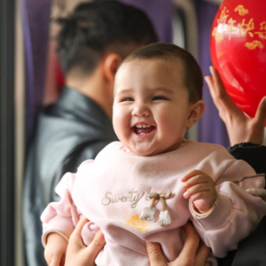在7557次列车上,一名旅客托起孩子玩耍(1月2日摄)。