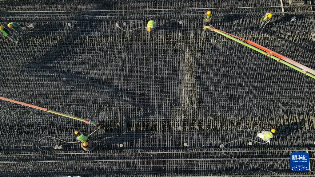 施工人员在中国铁建大桥局肥东制梁场生产箱梁(1月10日,无人机照片)。