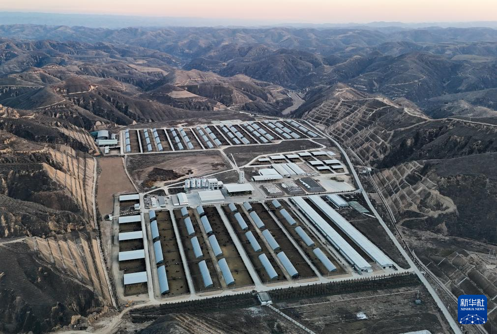 这是1月9日在陕西省榆林市清涧县拍摄的陕西外经贸国际农业合作有限公司黑牛养殖基地(无人机照片)。