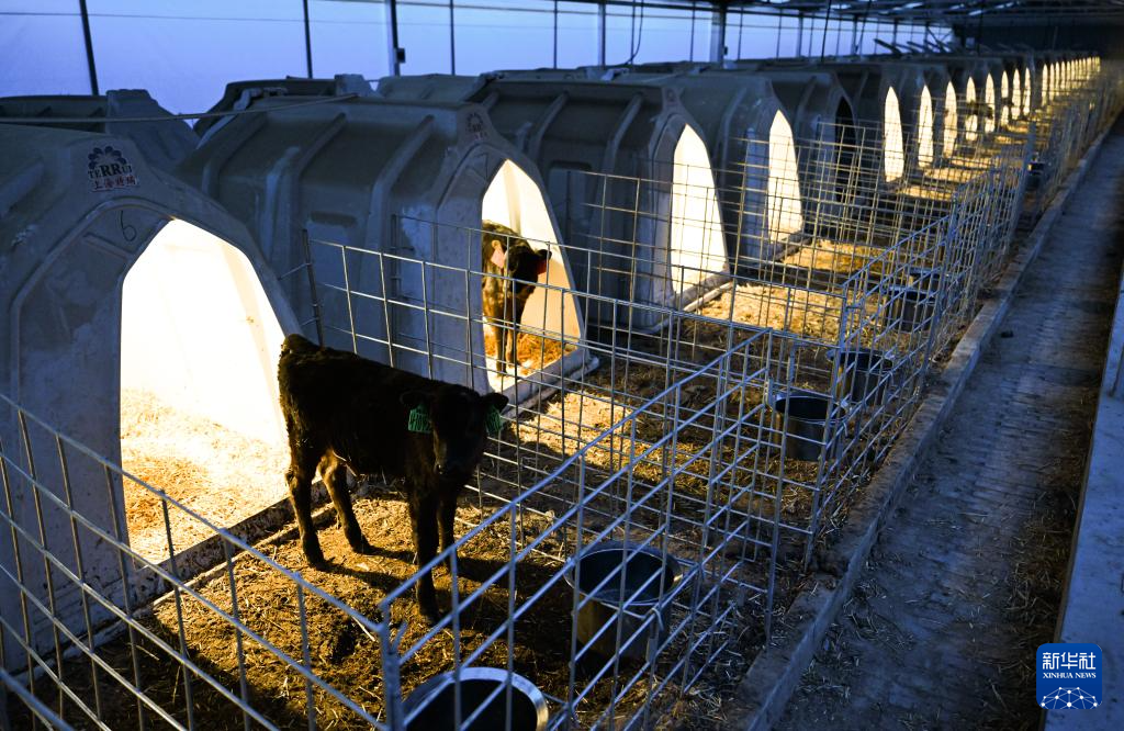 1月9日,在位于陕西省榆林市清涧县的陕西外经贸国际农业合作有限公司黑牛养殖基地,新出生的牛犊在“犊牛岛”中饲养。