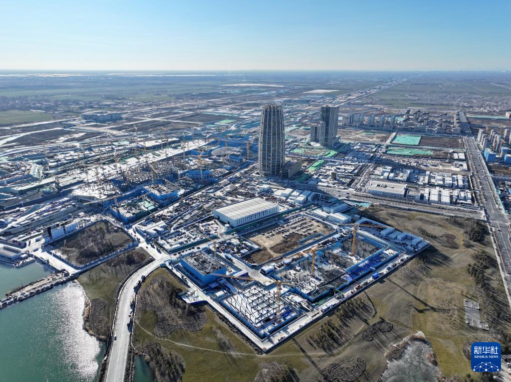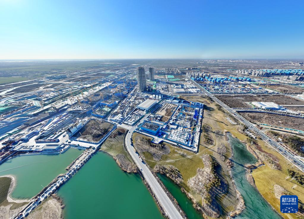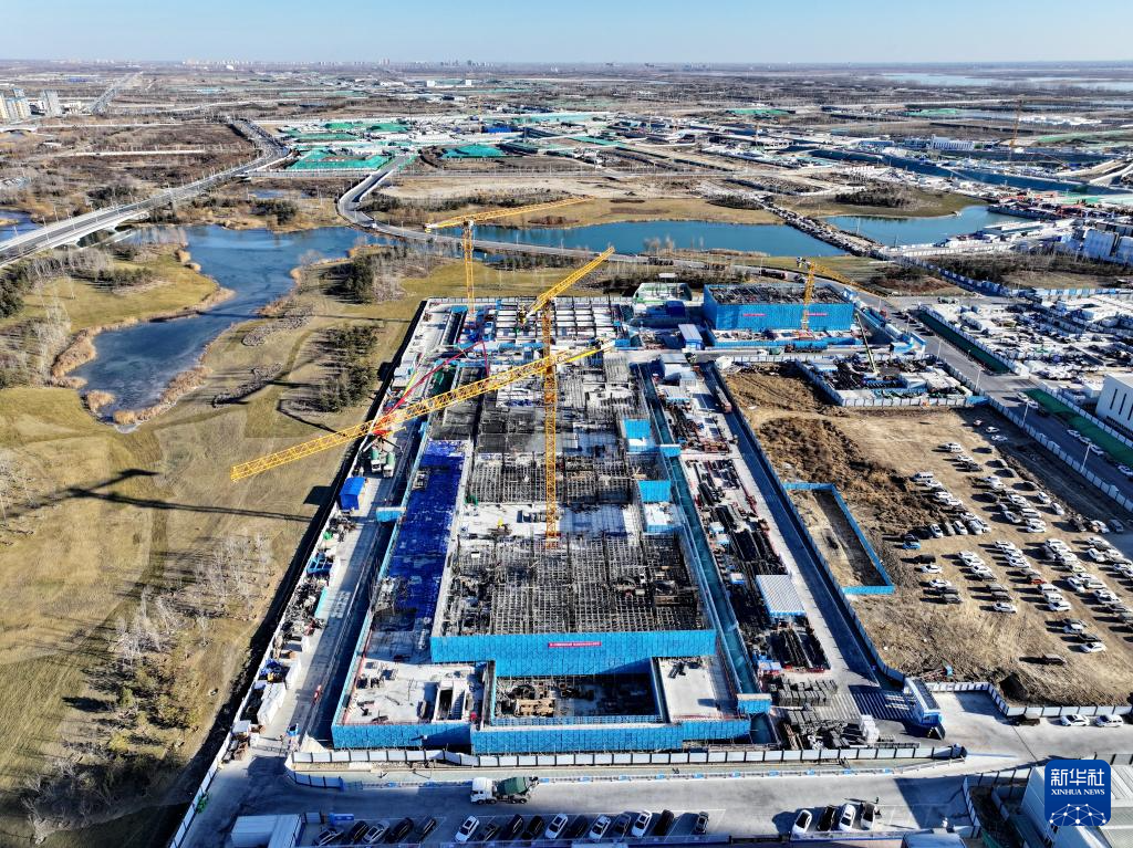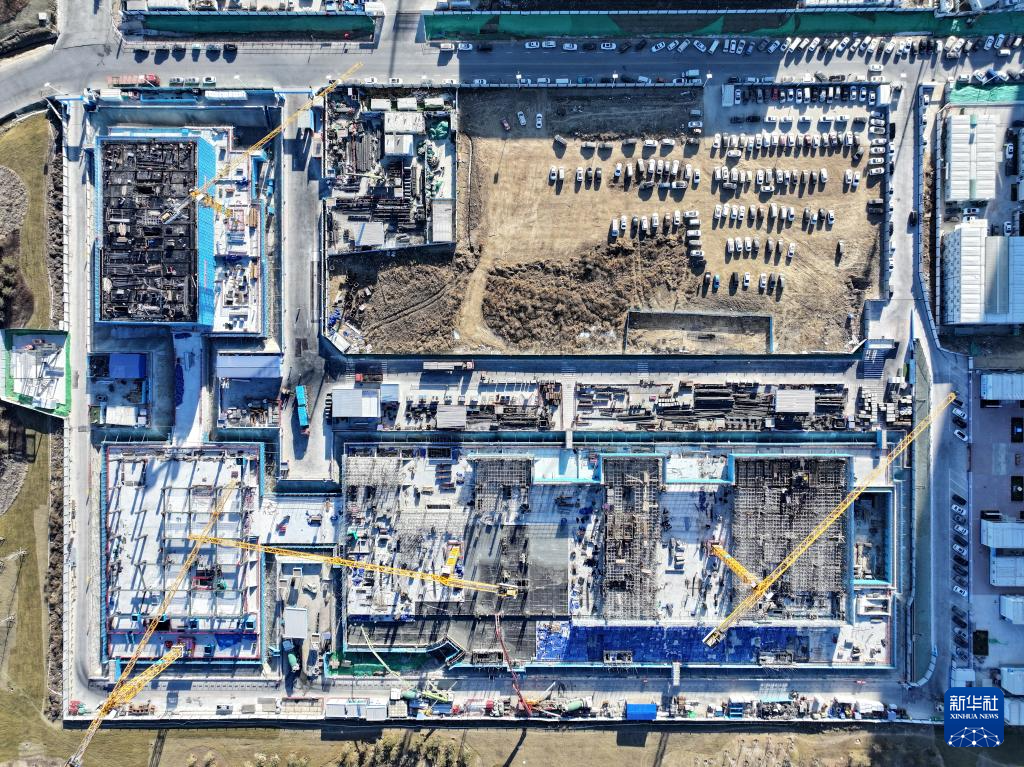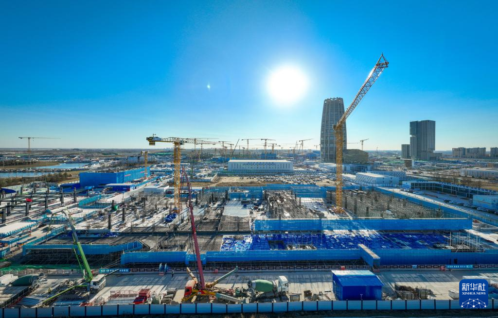 1月9日拍摄的中国矿产资源集团有限公司雄安总部项目建设现场(无人机照片)。