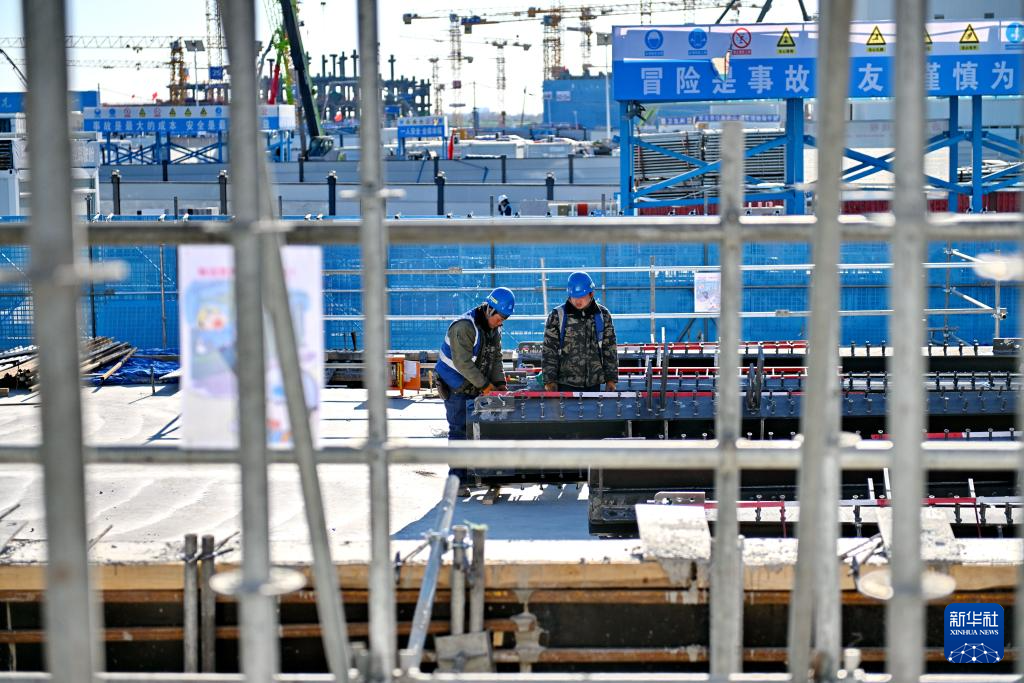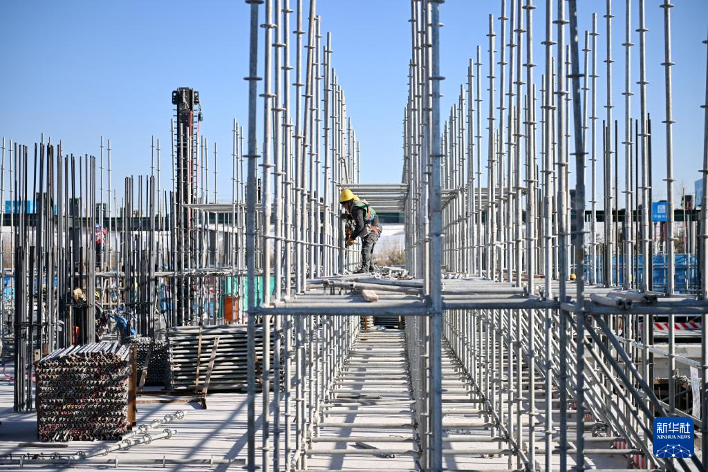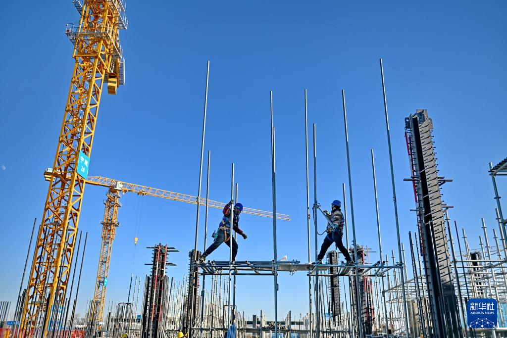 1月9日,中建三局工人在中国矿产资源集团有限公司雄安总部项目建设现场作业。