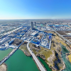 目前,首批疏解落户河北雄安新区的中央企业——中国矿产资源集团有限公司雄安总部项目建设正在按照施工节点有序推进。该项目位于雄安新区启动区中谷甲1号,由中建三局承建,在设计上利用地块相邻优势形成水平线条的延展性,天际线微微上扬,配合建筑顶部帆型风电装置,呈“扬帆启航”之势,并借助周边临水、近绿的景观优势,形成和谐、生态的景观效果。