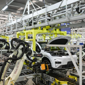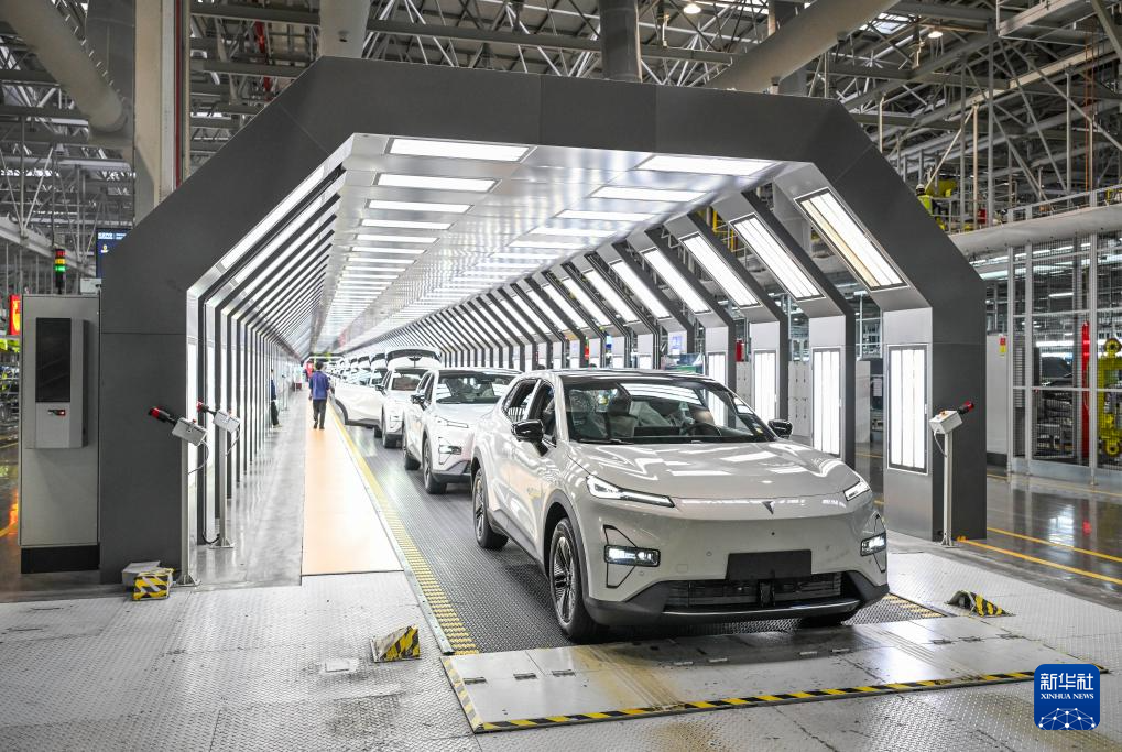 这是在位于重庆市两江新区的赛力斯汽车超级工厂拍摄的即将下线的新能源汽车(2024年6月7日摄)。