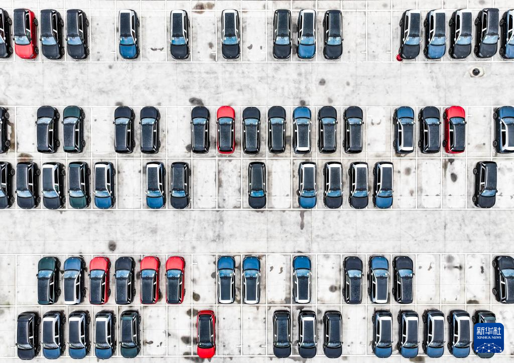 2024年11月6日在位于重庆市两江新区的赛力斯超级工厂拍摄的新能源汽车(无人机照片)。