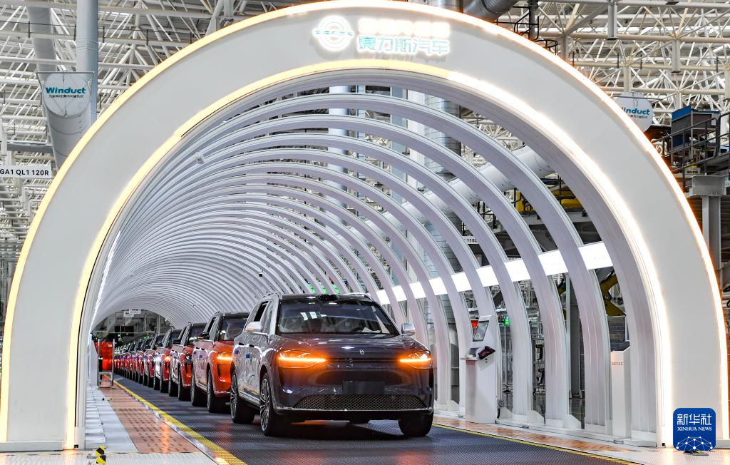 2025年1月9日在位于重庆市渝北区的长安汽车数智工厂总装车间拍摄的即将下线的新能源汽车。