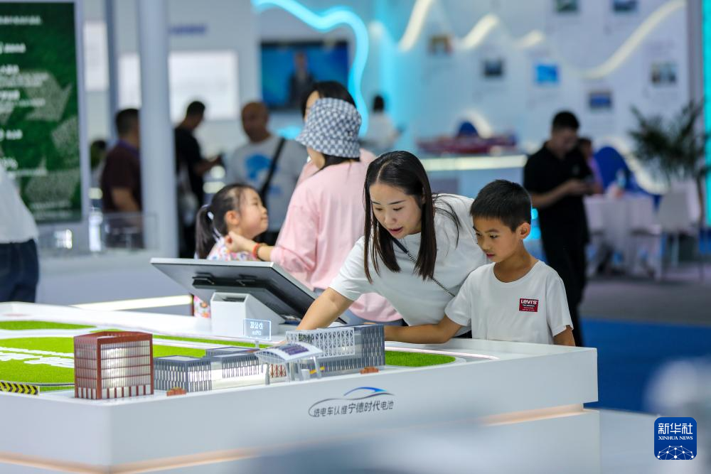 在宜宾国际会展中心举行的世界动力电池产业链供应链成果展示活动上,市民参观了解动力电池的运用场景(2024年8月31日摄)。四川省宜宾市是成渝地区双城经济圈的重要组成部分之一。