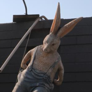这是1月10日在美国加利福尼亚州洛杉矶县阿尔塔迪纳地区拍摄的被山火摧毁的当地知名博物馆——“兔子博物馆”。