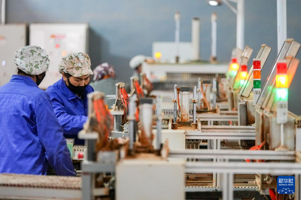 在湖南省浏阳市一家烟花生产企业的厂房,工作人员使用自动化设备组装烟花空内筒(1月7日摄)。