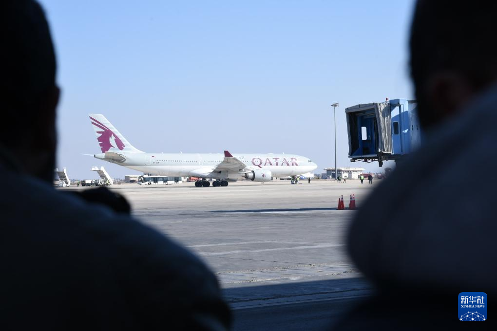 这是1月7日拍摄的一架降落在叙利亚大马士革国际机场的卡塔尔航空公司飞机。