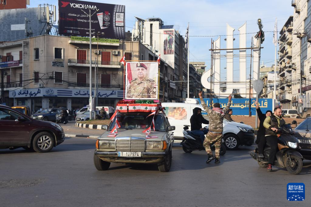 1月9日,在黎巴嫩的黎波里,民众庆祝奥恩当选黎总统。