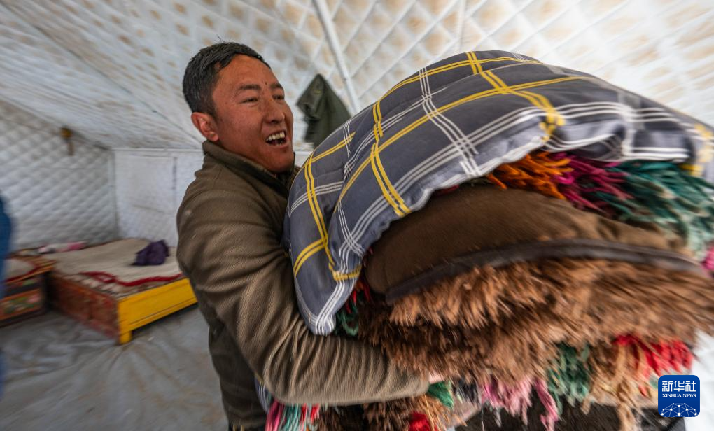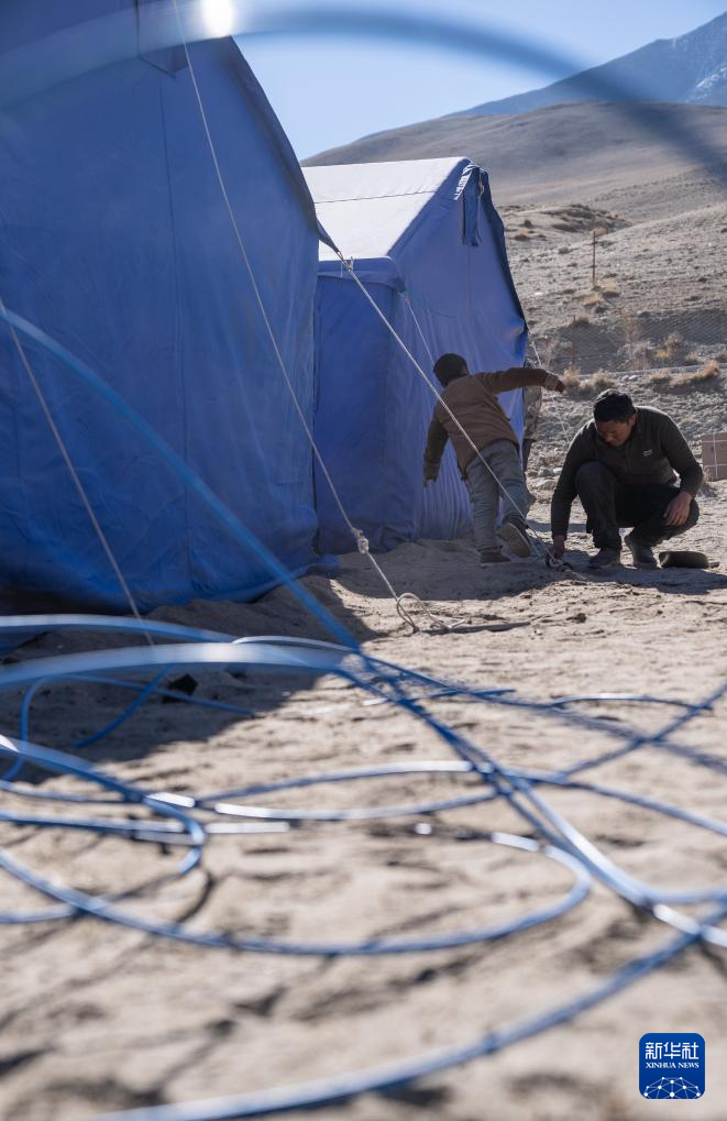 在定结县郭加乡乃村集中安置点,村民拆卸固定帐篷的钉子(1月11日摄)。