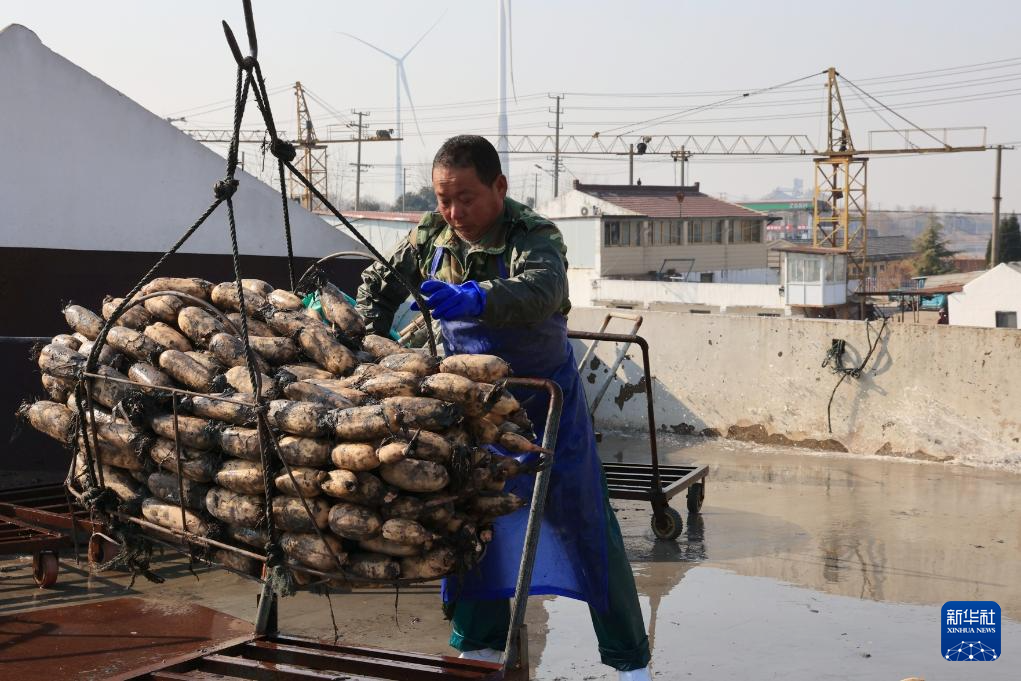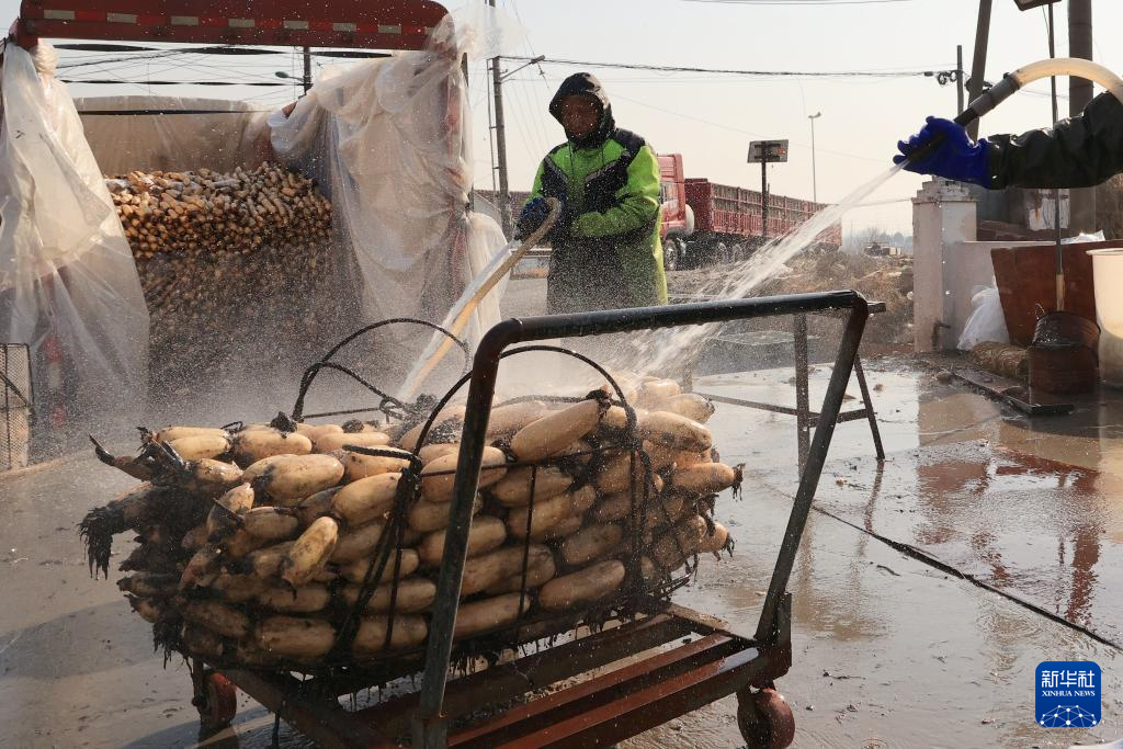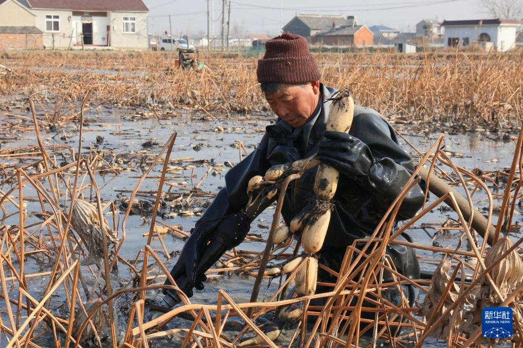 临近春节,在江苏省扬州市宝应县,藕农们采挖、分拣、加工莲藕,加大产销力度,提前储备春节市场,保障市民的“菜篮子”。