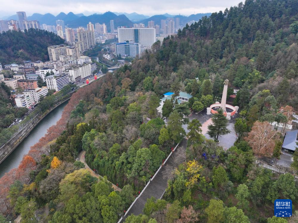 这是位于遵义市内的红军山烈士陵园(2025年1月9日摄,无人机照片)。