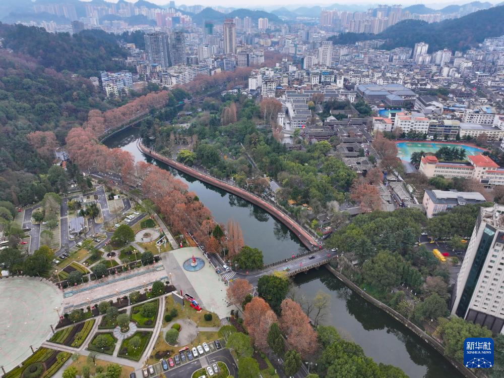湘江河流经遵义市城区(2025年1月9日摄,无人机照片)。