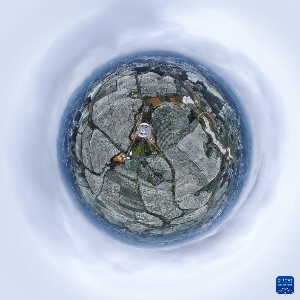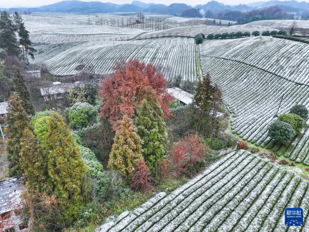 这是雪后的遵义市湄潭茶海景区(2025年1月9日摄,无人机照片)。