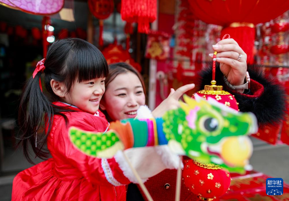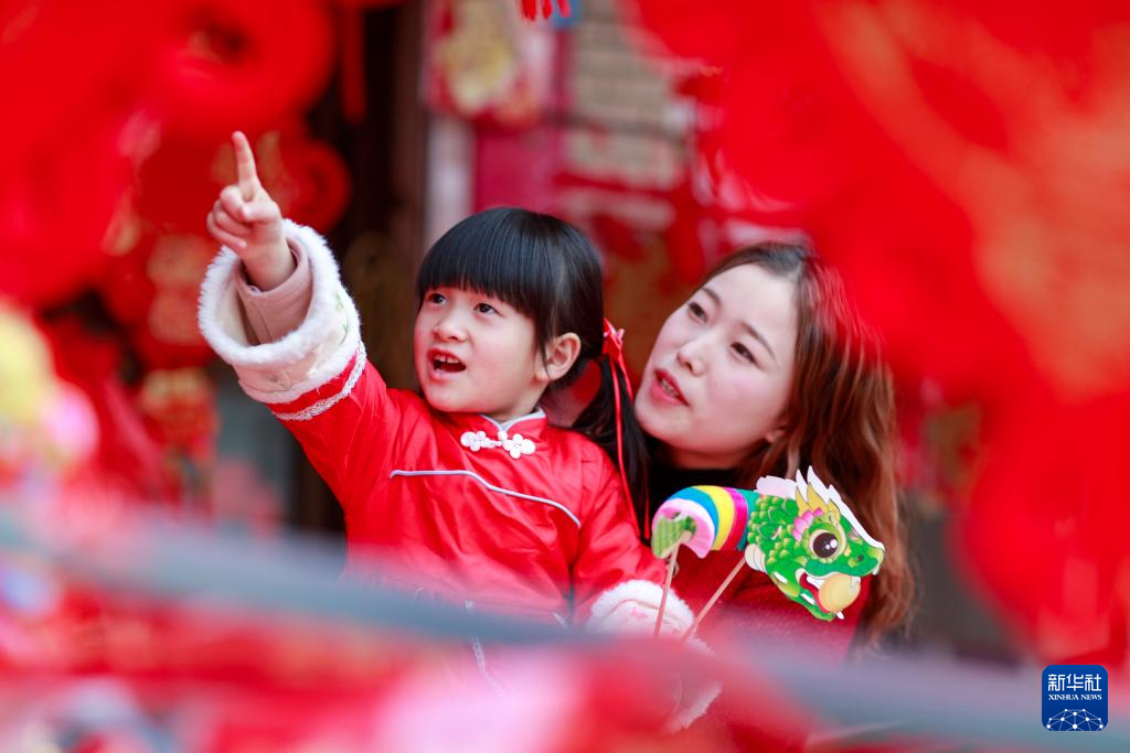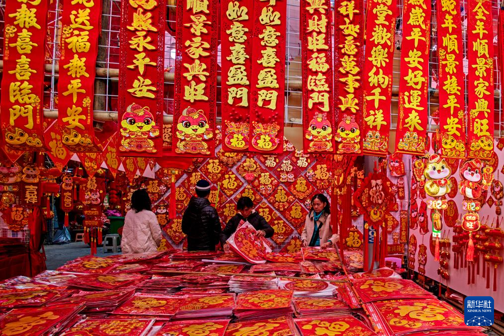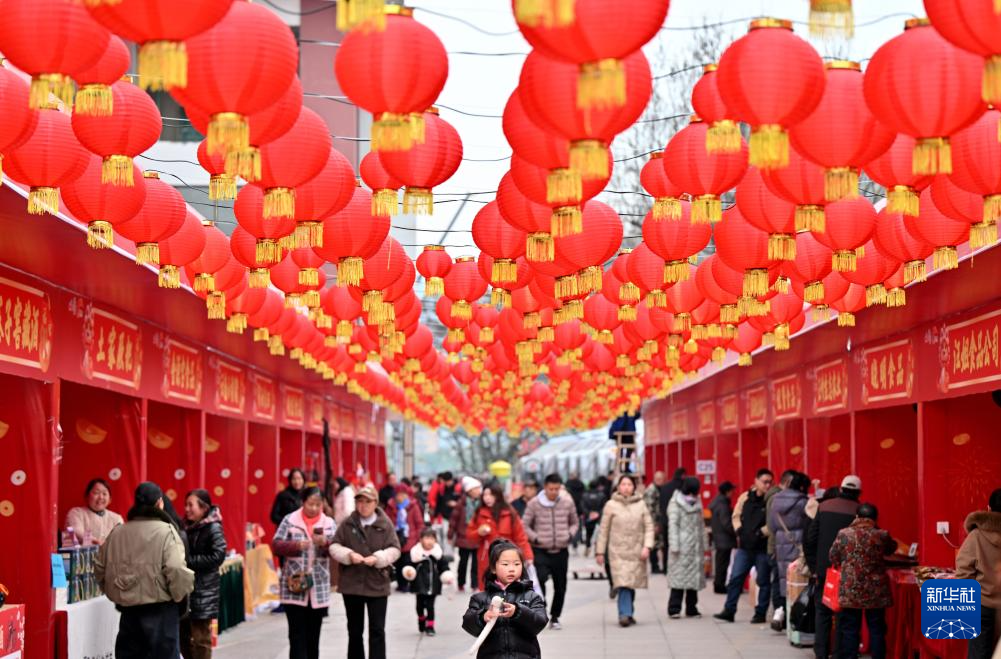 春节临近,大街小巷张灯结彩,人们逛集市、购年货,参加各种迎新年活动。