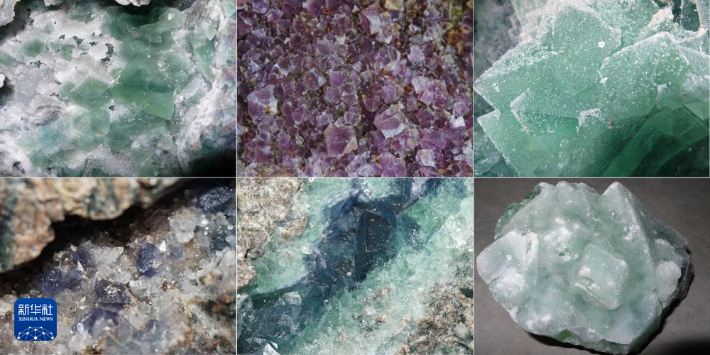 这是邹灏团队在野外勘查找到的颜色各异的萤石矿(拼版照片)。