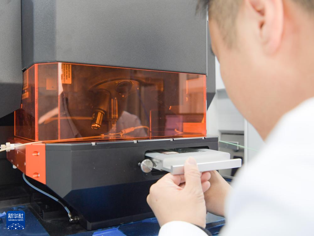 在成都理工大学油气藏地质及开发工程全国重点实验室,邹灏将需要分析测试的样品放入飞秒激光剥蚀电感耦合等离子体质谱仪中(2025年1月12日摄)。