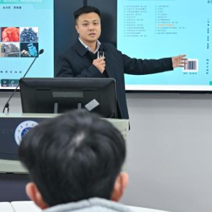 邹灏在矿床实验室给学生讲授典型矿床案例(2024年11月27日摄)。