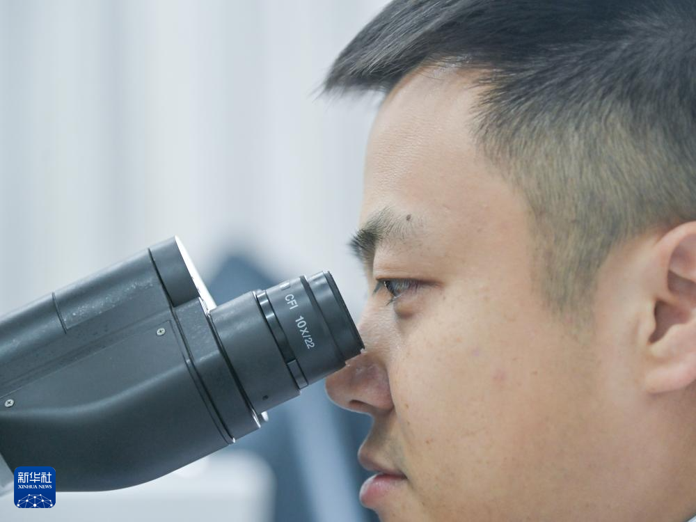 在成都理工大学地球与行星科学学院实验室,邹灏在开展岩石的镜下鉴定工作(2024年11月27日摄)。