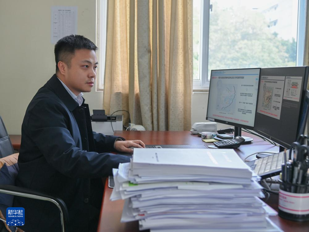 在成都理工大学研究生院,邹灏在办公室修改授课课件(2024年11月27日摄)。