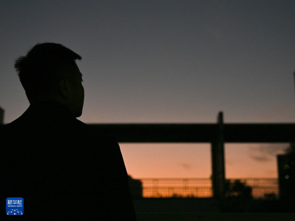 在成都理工大学研究生院,邹灏在办公室外远眺(2024年11月27日摄)。