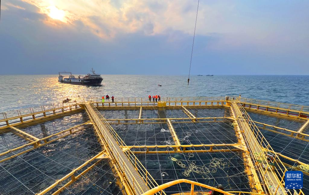 近日,在黄海深处离岸约130海里的青岛国家深远海绿色养殖试验区,中国自主研制的大型深海智能渔业养殖装备“深蓝2号”迎来首次三文鱼收鱼作业。据介绍,该网箱共养殖三文鱼近40万尾,存活率高,长势良好。