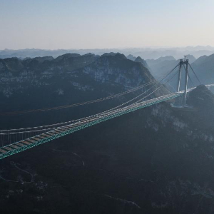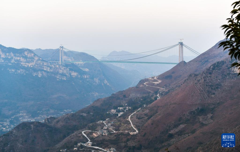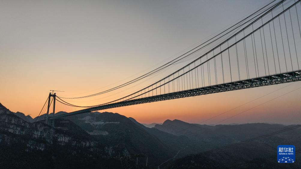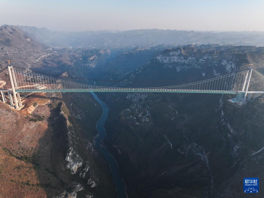 花江峡谷大桥因跨越被誉为“地球裂缝”的花江大峡谷而得名,是贵州省六枝至安龙高速公路的关键控制性工程,自2022年开工建设,预计2025年建成。大桥为钢桁梁悬索桥,全长2890米,桥面距水面垂直高度达625米,建成后将成为新的世界第一高桥。