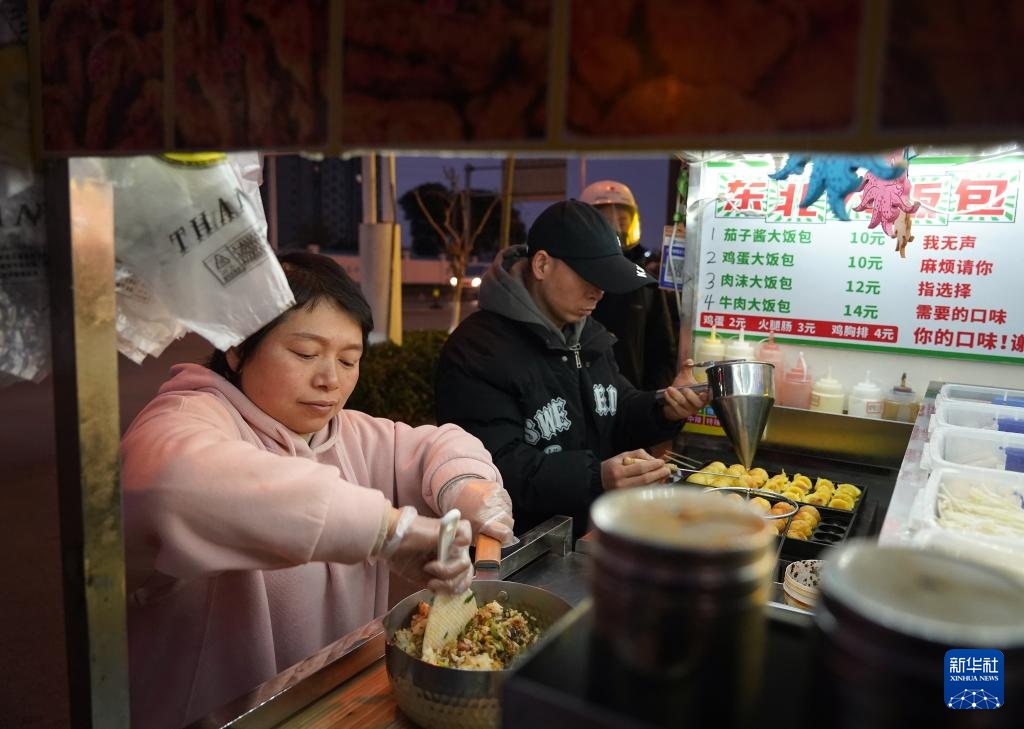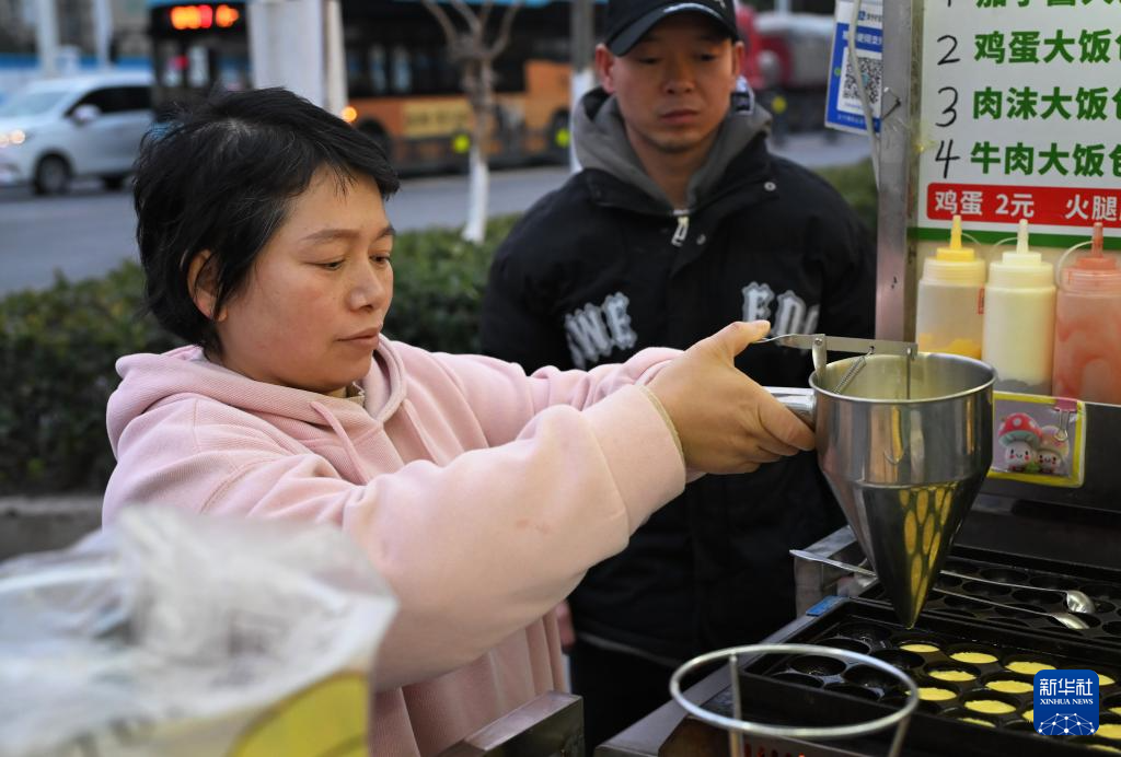樊检检在小吃摊制作小吃(1月7日摄)。